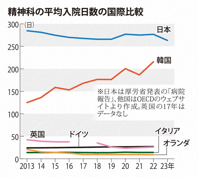 日本の精神病床の多さと入院期間の長さは、OECD諸国の中でも際立っています。